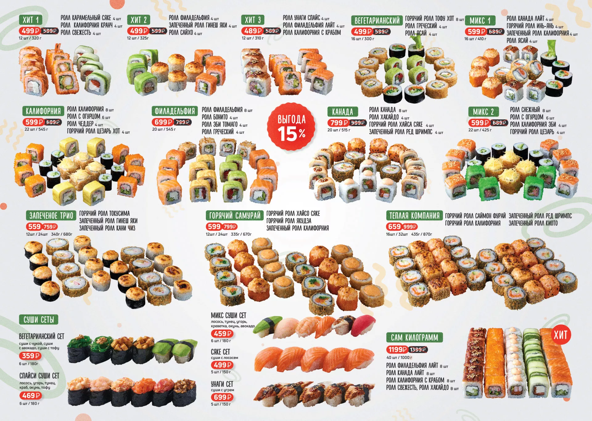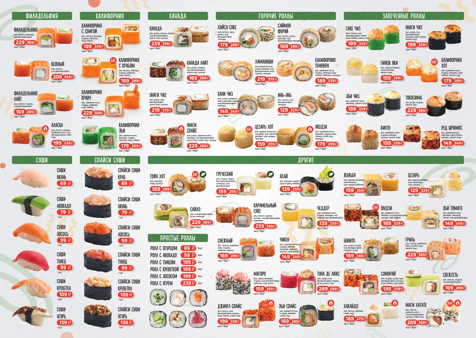 Оформление меню суши-бара «Roll Wok Club» в Спас-Деменске
